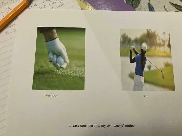 #13 My Boss Volunteered Me For A Golf Event That I Hated Every Second Of, So I Gave Her A Golf Themed Resignation Letter
