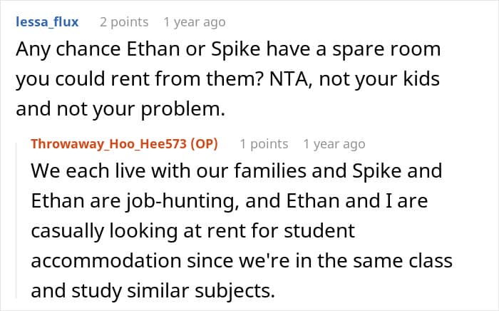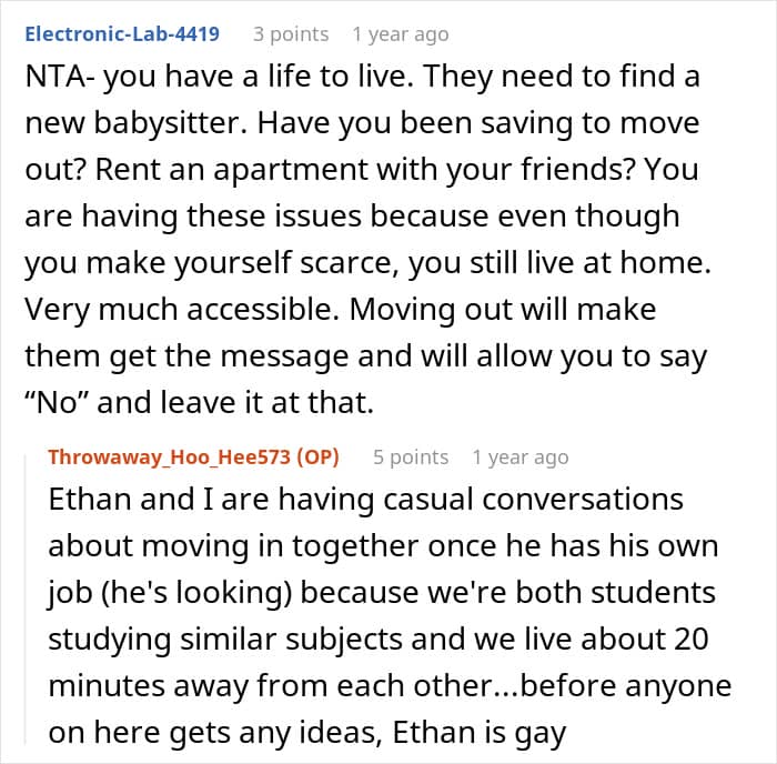 The author refused—the sister reacted calmly but immediately complained to their mom. And she, realizing that in this case, the burden of babysitting would fall on her, immediately lashed out with criticism toward the youngest daughter, accusing her of being “immature” and “abandoning the family.” Joanne again supported the OP, offering to spend the night at her place so that the mom would have time to cool off.