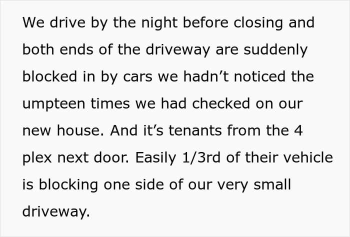 While it might sound harsh to go as far as getting someone evicted, blocking a driveway, particularly from two directions, isn’t just some regular annoyance. In the US, it’s illegal, even on your own property, as it limits access for emergency services. While we don’t know the exact layout of this person’s area, it’s not hard to imagine a case where an ambulance or, even worse, a firetruck can’t get to a needed area just because these individuals wanted to save a few minutes parking.