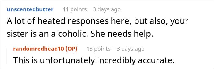 In the comments, the author wrote more about her sister’s alcohol problem and why she still wants to confront her instead of going NC