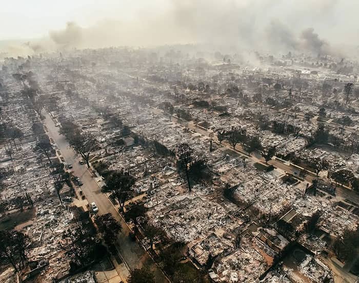The devastating fires have killed at least 25 people and destroyed more than 12,000 homes and other structures