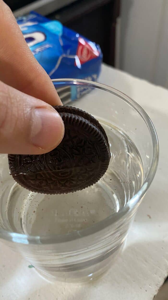 He dunks his Oreos in water instead of milk. I still don’t know why. No, he is not lactose intolerant, and no, he wasn’t poor growing up. He’s not a vegan. And we had milk in the house when I caught him doing this. He just prefers to dunk his Oreos in water.