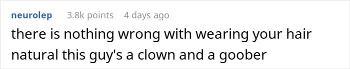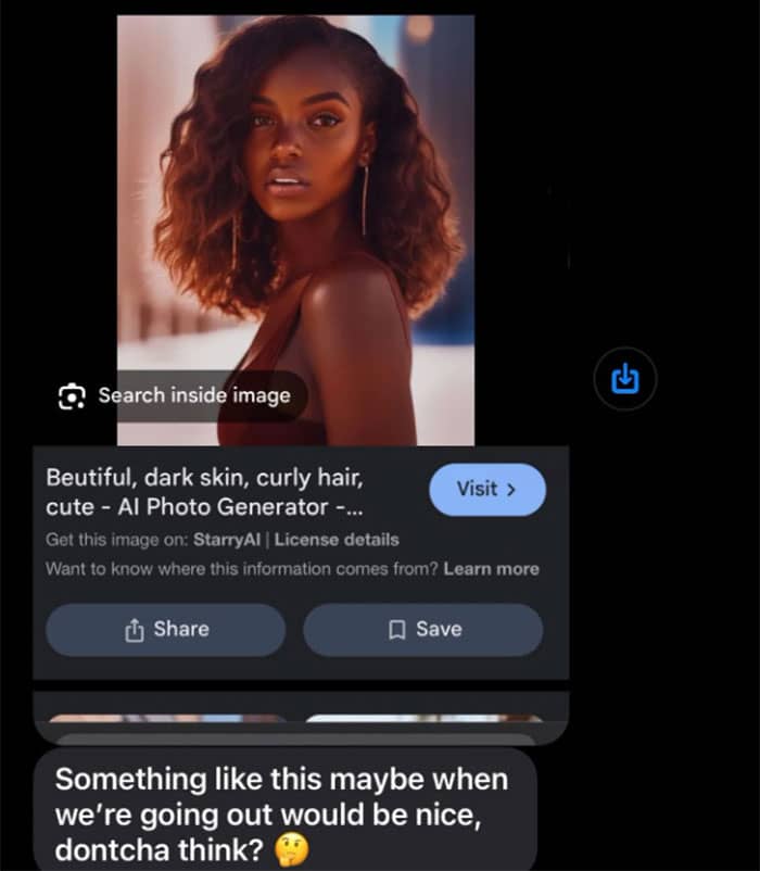 What’s not right is criticizing someone’s natural hairstyle and telling them (via text, in a social setting) that you’d like them to look more like someone else… that ‘someone else’ being a picture of a person created via generative artificial intelligence.