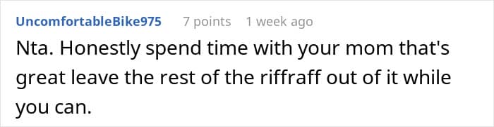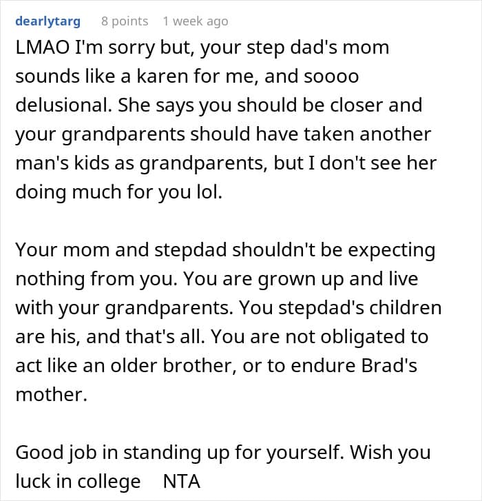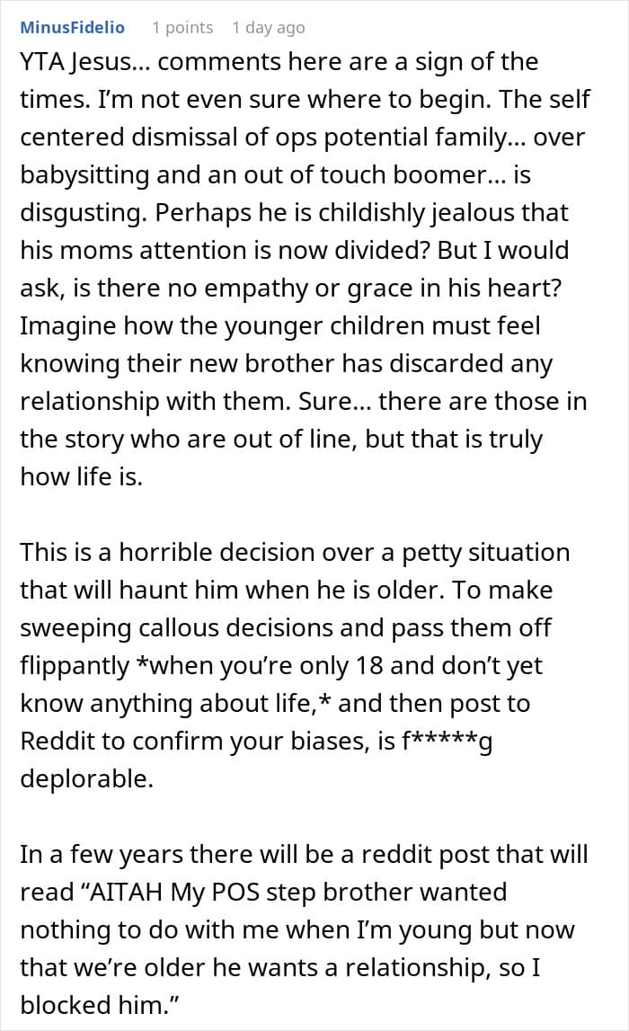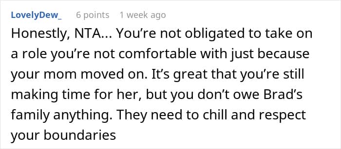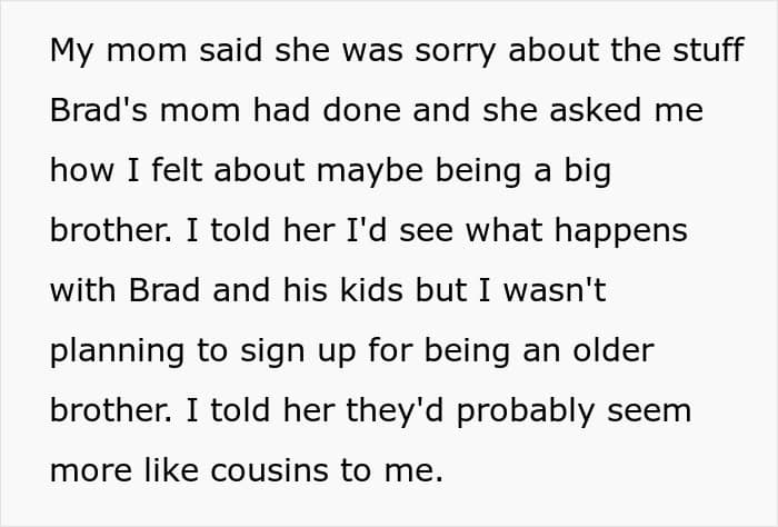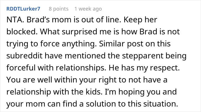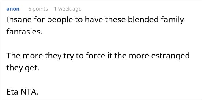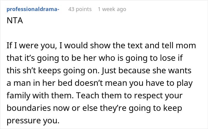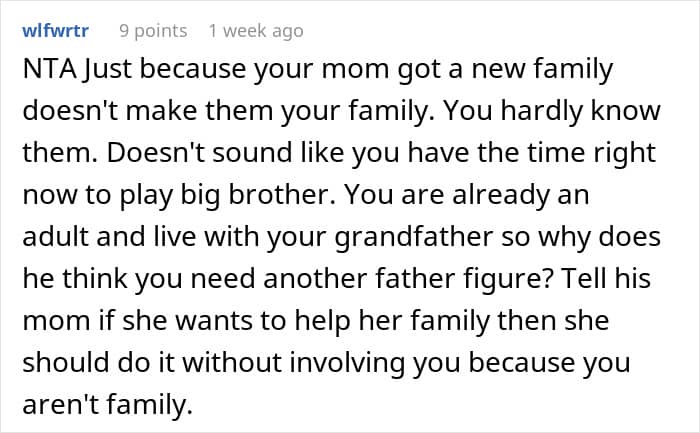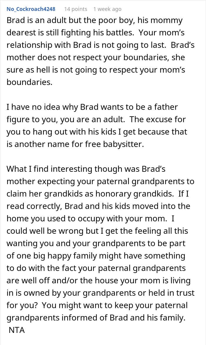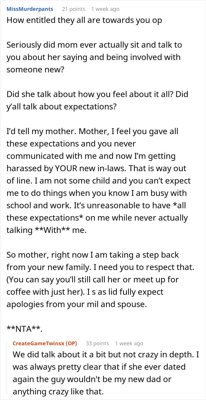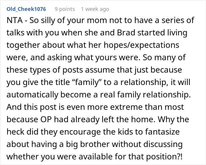Some, however, thought he should make an effort to connect withhis mom’s fiancé and his kids