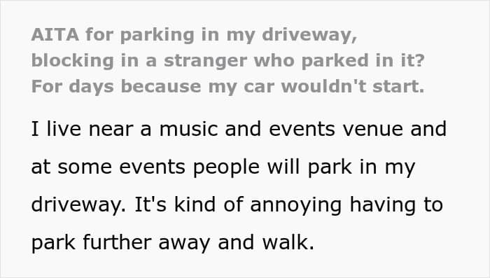 A man parked his brand-new Lexus in his neighbor’s driveway, thinking it was acceptable. He then had the nerve to threaten legal action against the homeowner for parking in front of his vehicle and blocking him in.