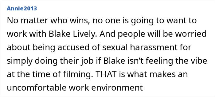 “Even though she’s Blake Lively and can say no and isn’t going to be fired for speaking her mind the way that somebody else might fear, she still has to keep working with him and keep the peace and play nice.”