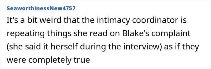When asked about the power imbalance, the intimacy coordinator explained that while Lively is a much bigger name in Hollywood than Baldoni, this didn’t change the fact that she had to take directions from him.