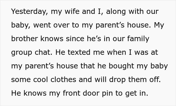 He may also want to take more preventive measures to thwart similar incidents that may endanger his child. One way is to change his PIN and deny his brother access to his home.