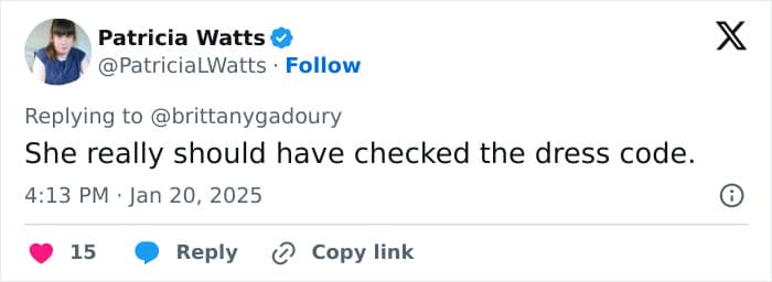 “She should’ve checked the dress code,” another lamented. “Yet another proof that money certainly doesn’t mean good taste.”