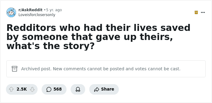 Someone asked “[People] who had their lives saved by someone that gave up theirs, what’s the story?” and netizens shared their examples. So settle in as you read through, upvote your favorites and post your own examples in the comments below.