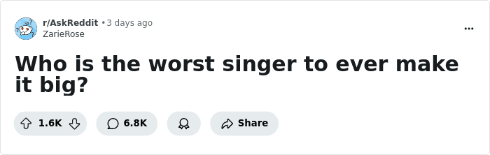 To find out how this conversation started in the first place, we reached out to Reddit user ZarieRose, who invited readers to share examples of singers that they don’t think have great voices.