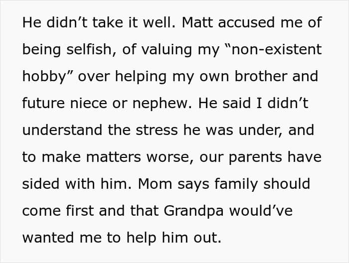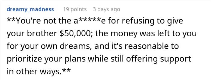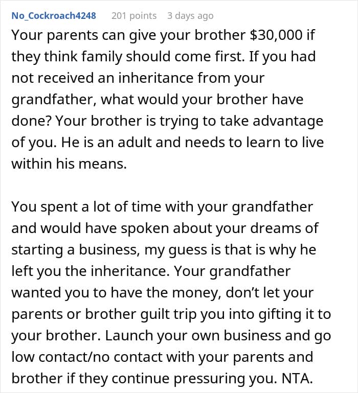 Unfortunately, getting money and access can breed a lot of envy. Even among your nearest and dearest. One anonymous man went viral after turning to the internet for help. He opened up about how he got a sizable inheritance from his beloved grandfather. However, the author’s younger brother began pressuring him to give him over half of the sum because he was desperate for cash due to his debt and situation at home. You’ll find the full story, as well as the internet’s reaction, below.