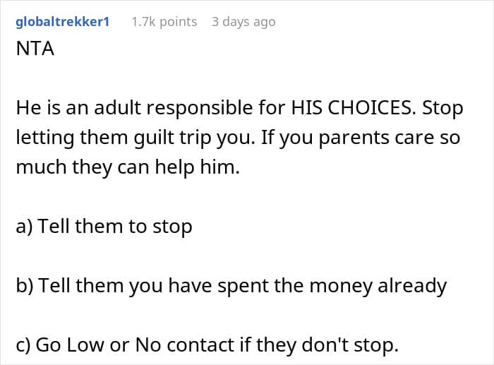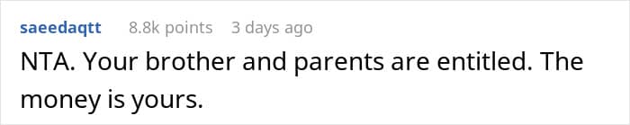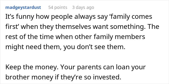 Meanwhile, many internet users also noted that the man’s younger brother is a grown-up who’s responsible for his own actions and financial health. Unfortunately, the author of the story deleted his account after his post went viral, so we were unable to reach out to him for further comment on what happened with his family next.