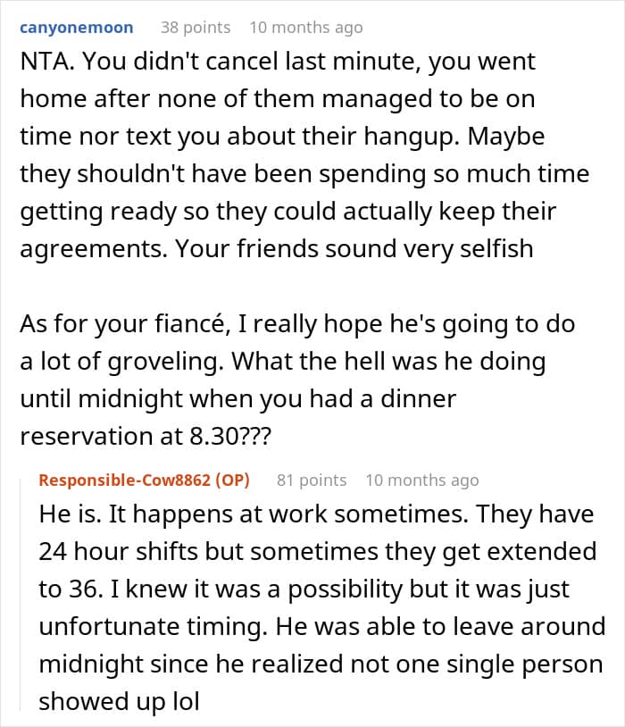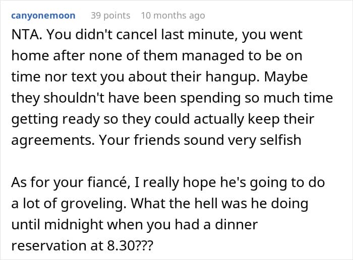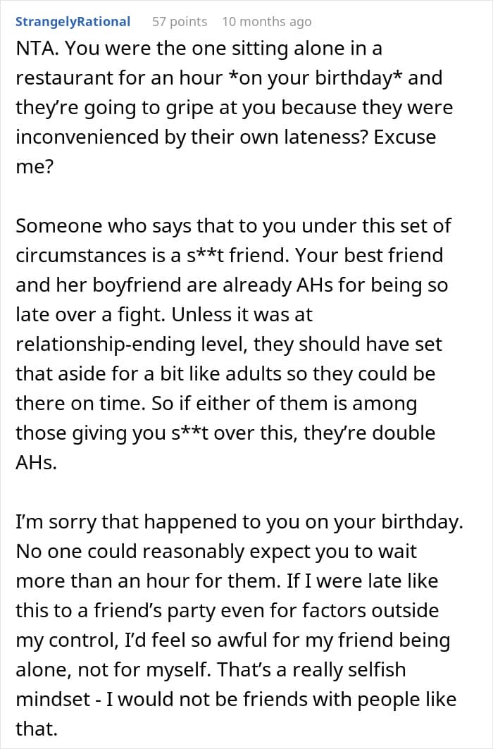 The author of today’s story went through this experience when her friends, family, and fiancé failed to show up for her birthday dinner. When she decided to cancel, she received a barrage of angry texts for supposedly wasting everyone’s efforts.