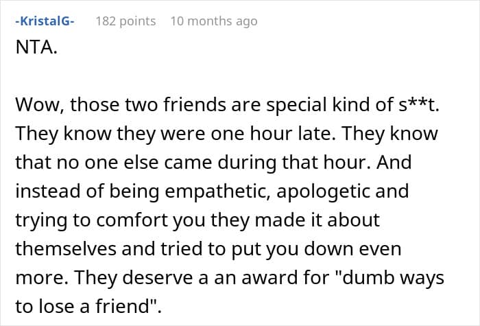 Most readers sided with the author, with some urging her to cut ties with her friends