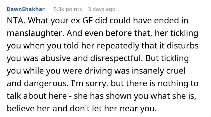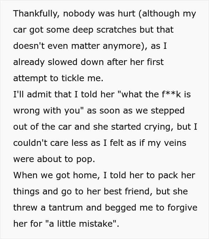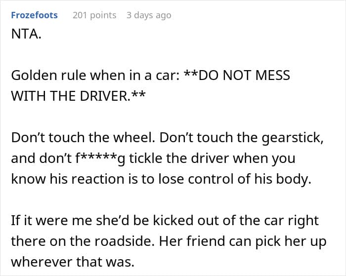 However, when Reddit user Few_Relative4595 took his girlfriend for a drive, she decided to become a tickler. While he was behind the wheel!