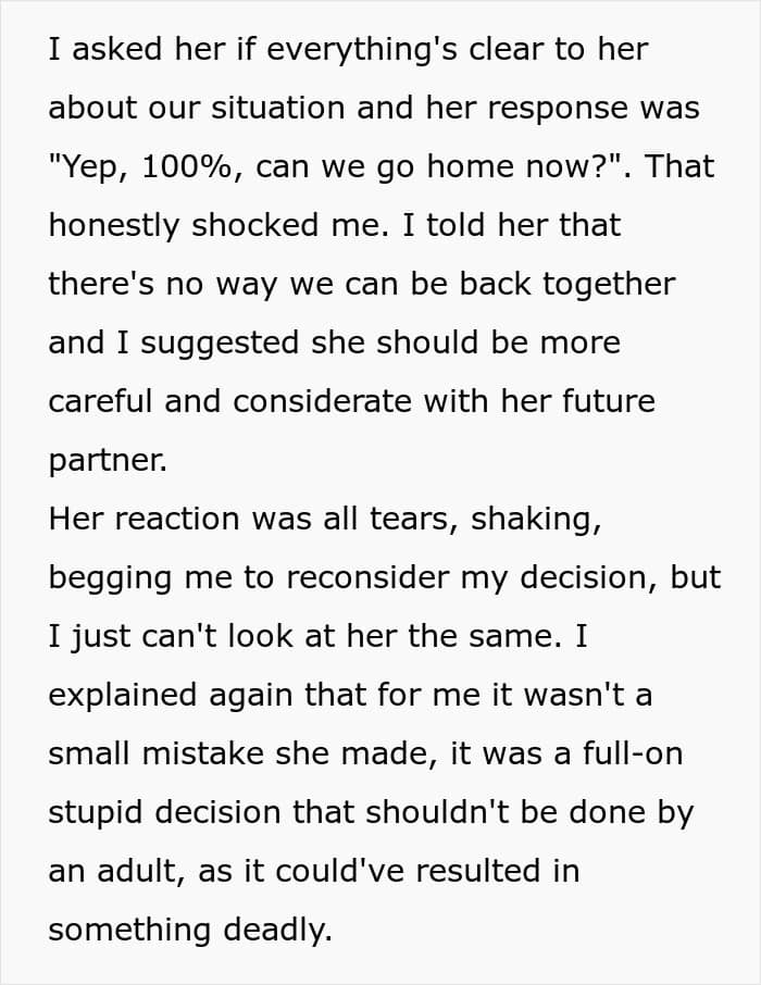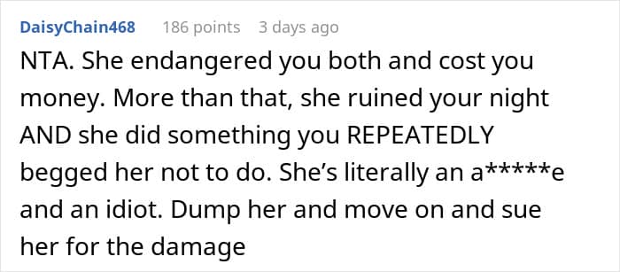 Whether or not you think the breakup was warranted, it’s clear that the woman shouldn’t have endangered herself and her boyfriend in such a careless manner.