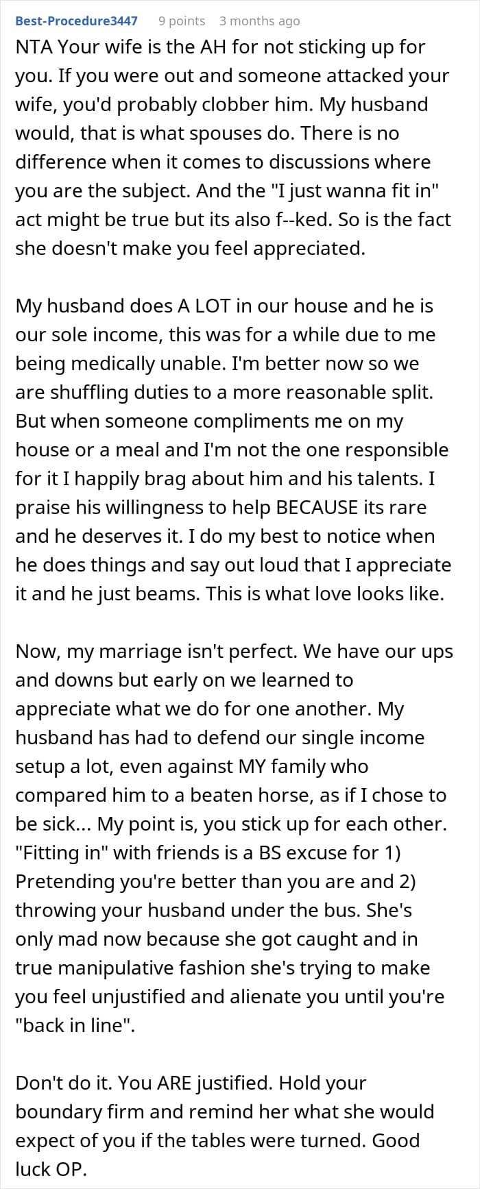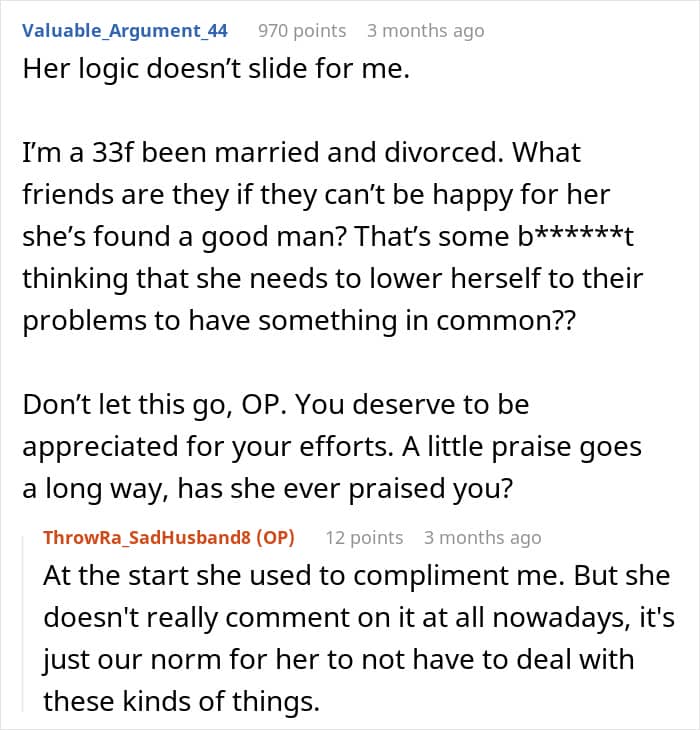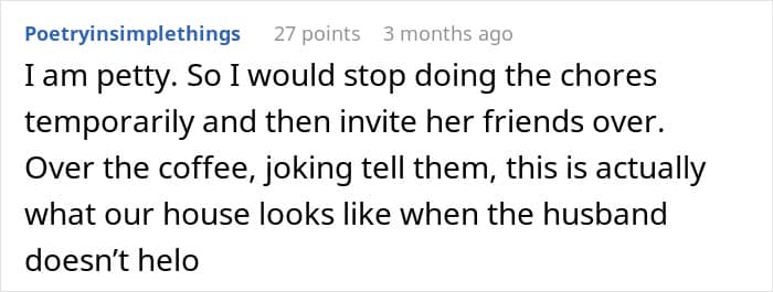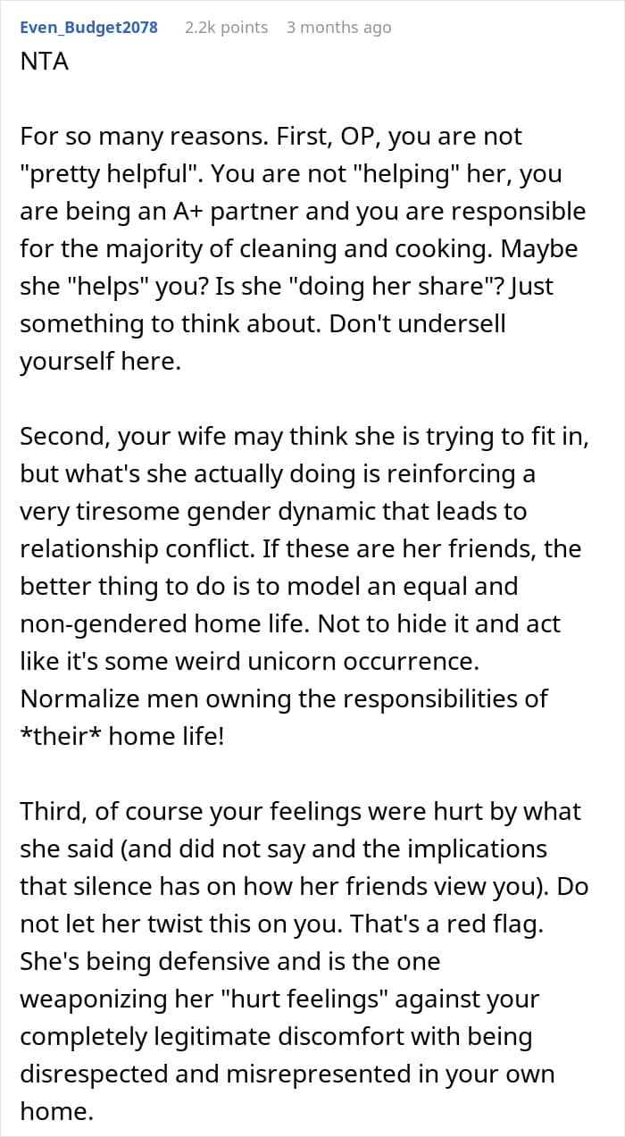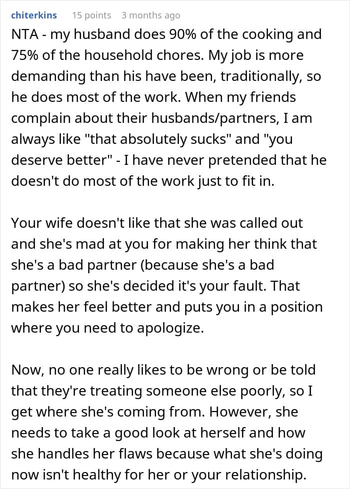 Yet in his home, this redditor was the one taking care of most of the chores. That didn’t seem to bother him much, though, that was until he overheard his wife talking to her friends about it all.