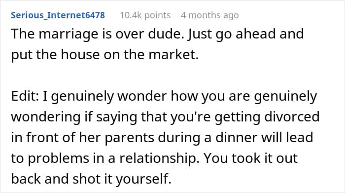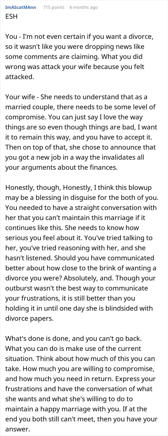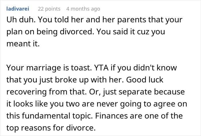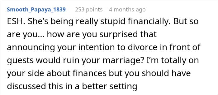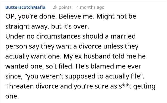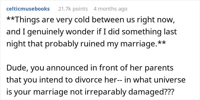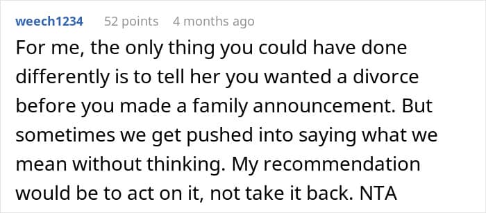 Some people felt the author shouldn’t have hinted at divorce if he didn’t truly want it
