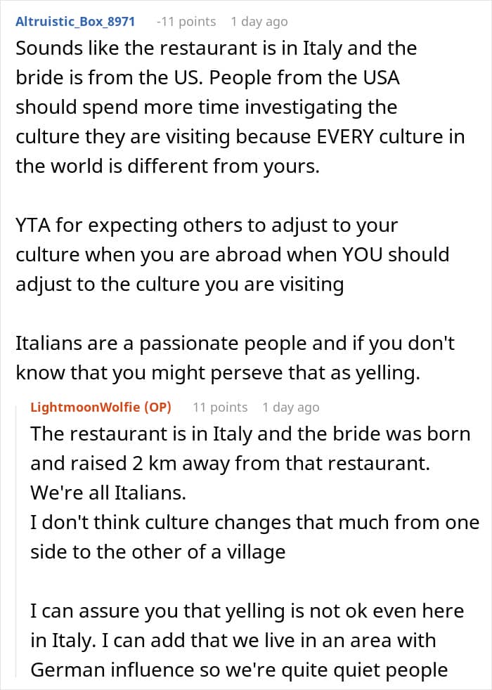 Whether it’s a Friday night in with friends or a corporate event, food tends to be an essential part of all sorts of get-togethers, not to mention a wedding. And for many people, including the OP and her family, it’s more than just sustenance. “Well, we’re Italians living in Italy, so I guess it’s really, really important as food is usually the center of the party,” the redditor told We.