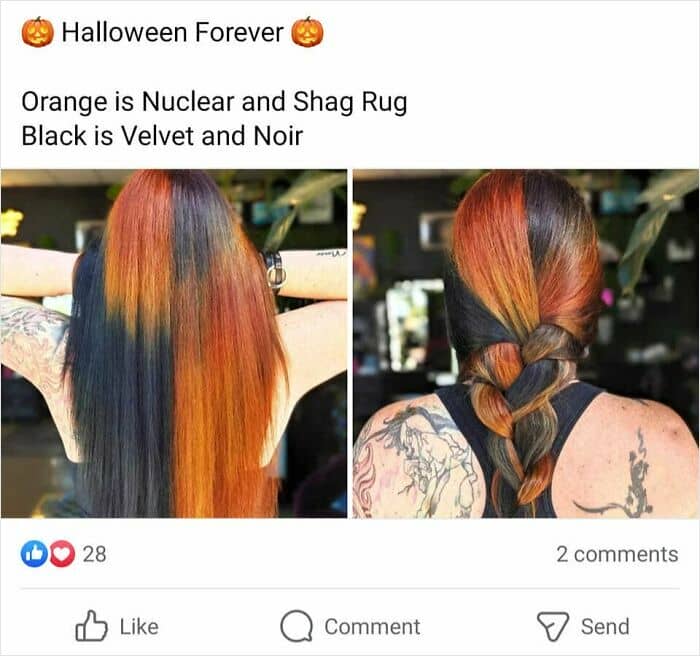 When it comes to the most popular posts in the community, she shared, “Based on group engagement, I can say the most favorite post or type of post would be bad hair dye jobs. I personally can’t pick a single favorite one, but one that stands out is our cover photo. We picked it because of the hilarious backstory.”