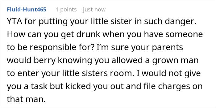 Some people even thought the OP didn’t do enough and was acting irresponsibly by getting drunk while a minor was in the house