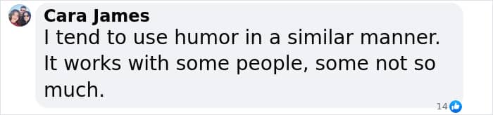 “I tend to use humor in a similar manner. It works with some people, some not so much,” read a social media comment