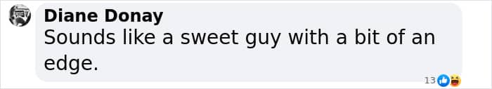 “Sounds like a sweet guy with a bit of an edge,” read one comment