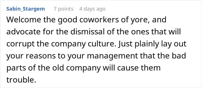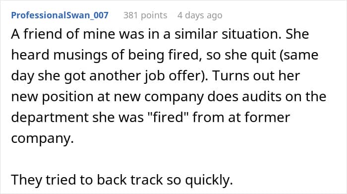 However, she got the last laugh when the new company she went to work for acquired her old one