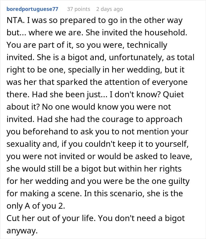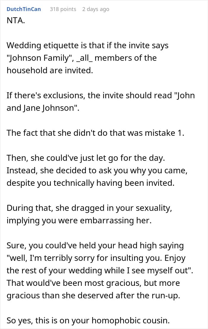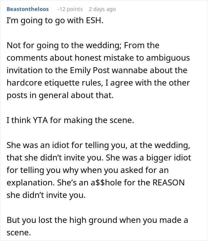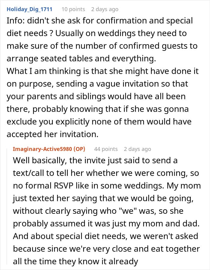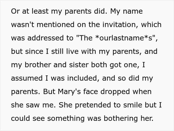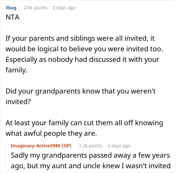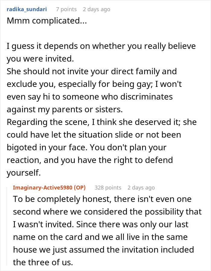 “There isn’t even one second where we considered the possibility that I wasn’t invited,” the OP wrote in the comments