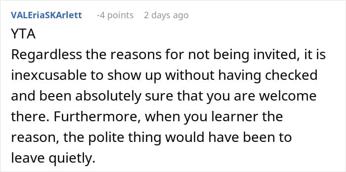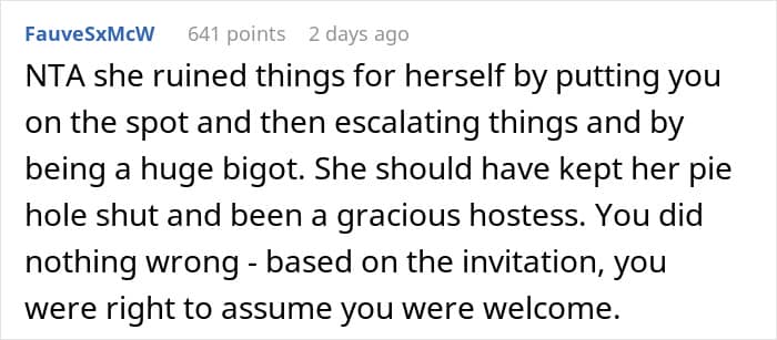 However, others thought that the author should’ve checked whether she was really invited and blamed her for causing a scene