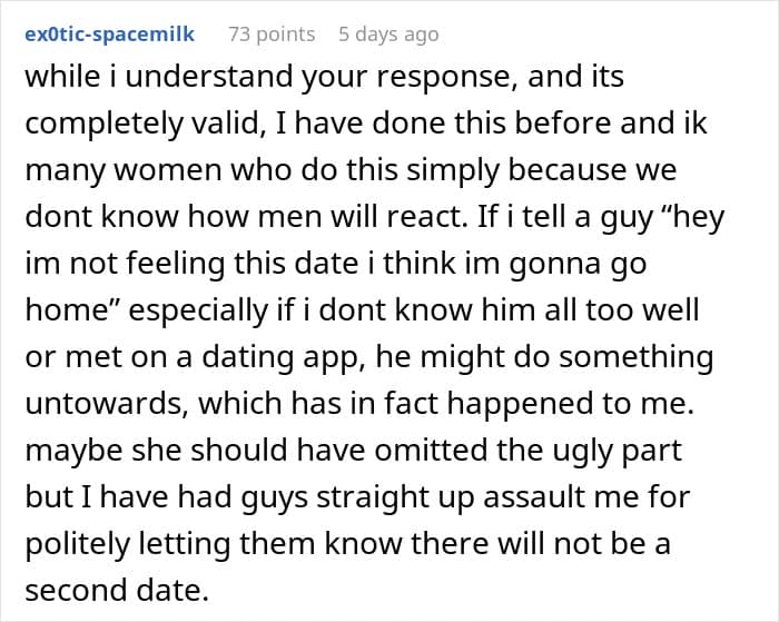 If we were to take the Redditor’s word for this particular case, it sounds like the woman made the night way more complicated than it had to be.