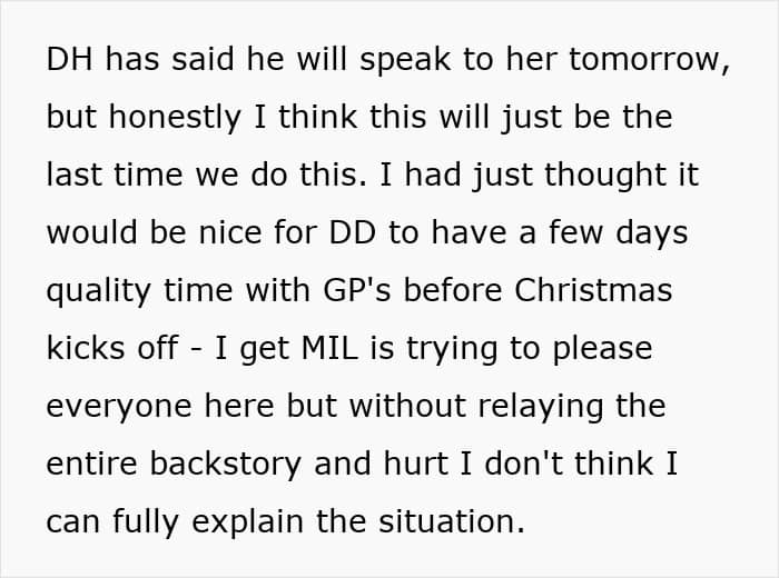 The OP (original poster) and her husband have been together for 12 years. Once upon a time, the OP and her mother-in-law got along pretty well, until the kids entered the picture. So, the spotlight shined only on the OP’s sister-in-law’s son, aka the mother-in-law’s golden grandchild, while the OP’s daughter has been playing second fiddle for years.