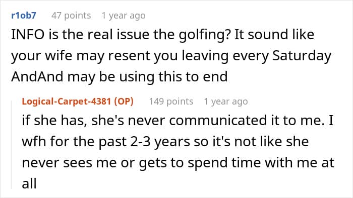 “The issue is not even about golf – it is that such problems in the family should be resolved through a general discussion, and not through all kinds of manipulation,” says Irina Matveeva, a psychologist and certified NLP specialist, with whom We got in touch for a comment on this case. “It’s quite reasonable that this man feels hurt and partly neglected.”