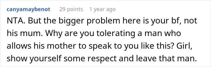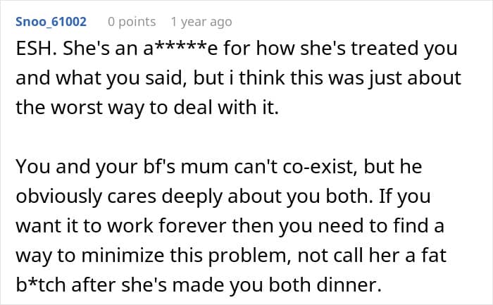 The situation escalated further, causing a rift between the boyfriend and his mother. The woman felt guilty and asked the AITAH subreddit for answers. Scroll down for the entire story.