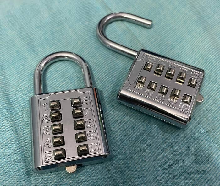 Those combination locks with 5 vertical buttons?