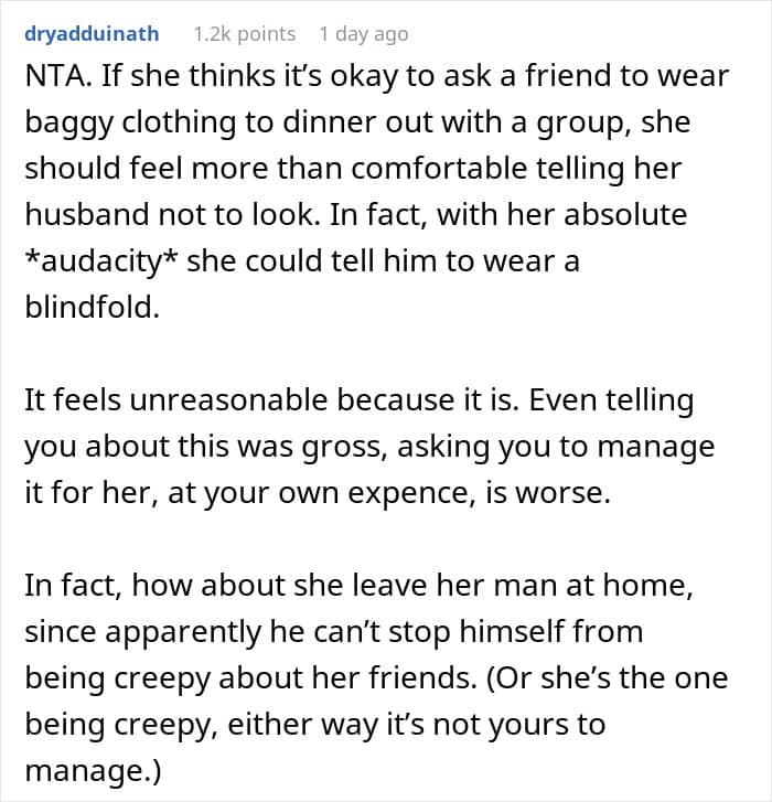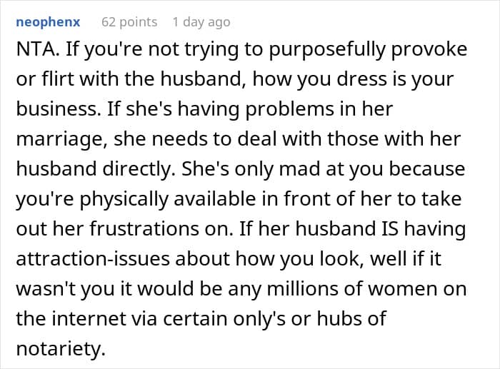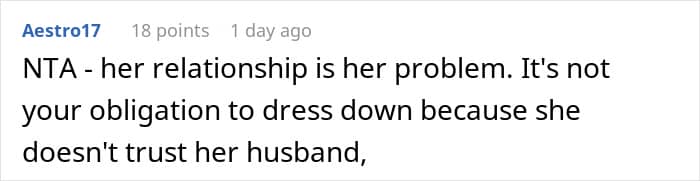Netizens side with the woman, saying she’s not a jerk for wearing her normal clothes in front of her friend’s husband