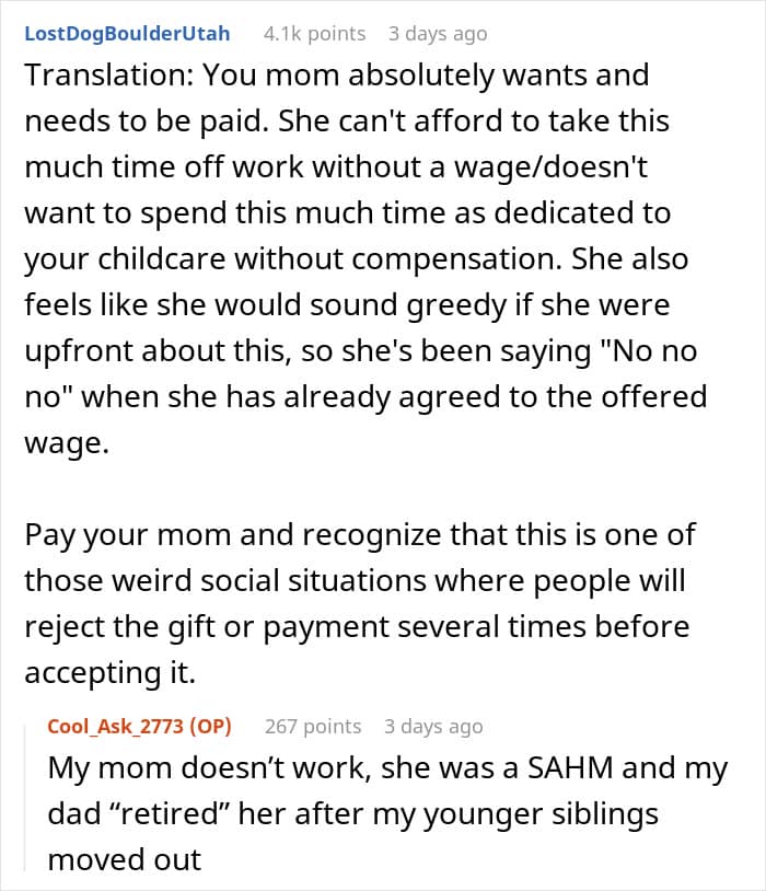 Not long ago, a Reddit user shared her story asking community members if she was indeed being a jerk for not wanting to pay her mom for babysitting her soon-to-be newborn as she offered to do it for free. The post caught quite a lot of attention and received more than 2.4K upvotes and almost 1000 comments.