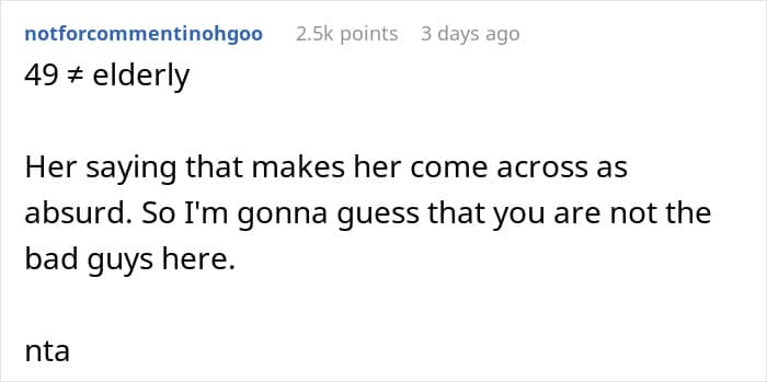 Redditors had a discussion with the author about this situation, and most of them pointed out that 49 Y.O. is not elderly