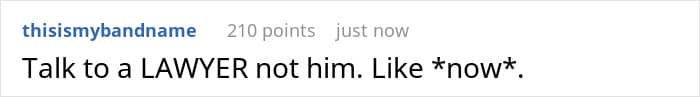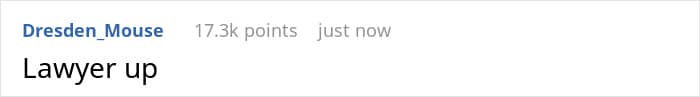 People in the comments sided with the author unanimously, urging her to get the lawyer involved as soon as possible – and actually nothing more