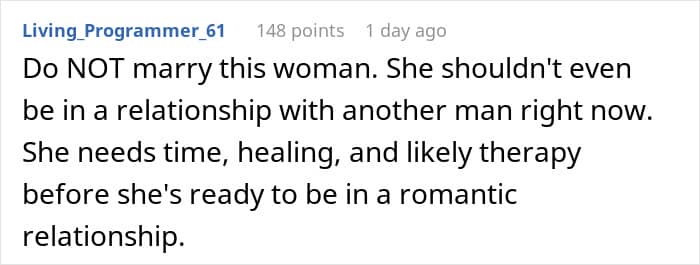 If your new partner believes you care more about your late spouse than them, then your relationship is built on shaky ground. Unfortunately, the author of the viral internet story deleted their account, so we were unable to reach out to him for further comment.