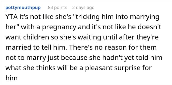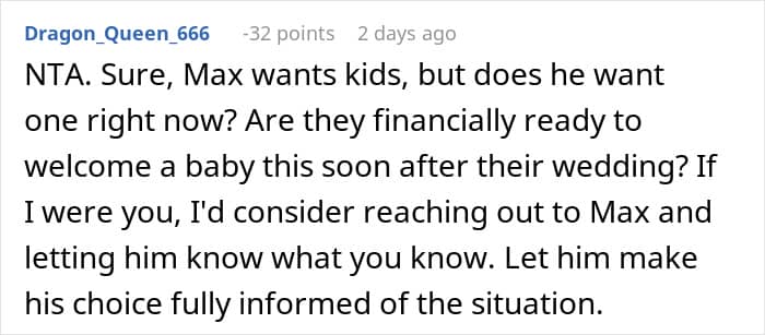 In this situation, the groom-to-be has no idea about the big change coming his way. Do you think it’s fair for the bride-to-be to keep this a secret? Share your thoughts in the comments below.