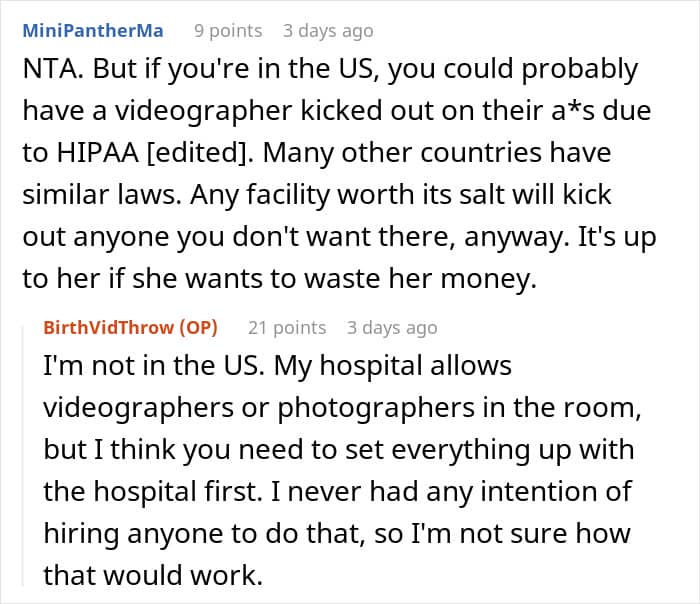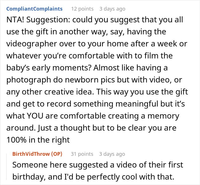 With her due date approaching, Reddit user BirthVidThrow received a videographer’s services as a Christmas present to film the childbirth. But the problem was that she didn’t want it. In fact, the woman had repeatedly expressed that she found the idea repulsive.