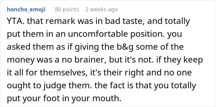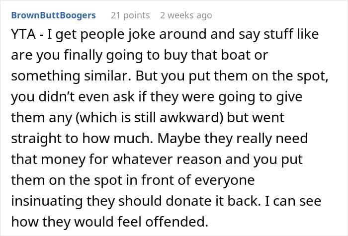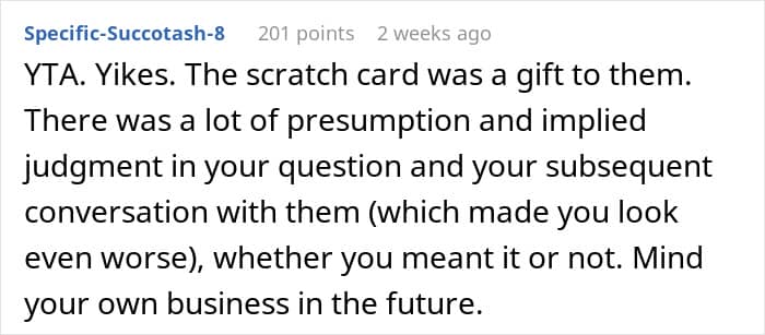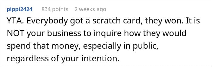 The sum won by the OP’s friend seemingly wasn’t a life-changing amount, but it was enough to cause trouble as well. Even though the redditor said she intended no harm with the question, the majority of AITA community members agreed with the people calling her a jerk for asking Sarah about the money.