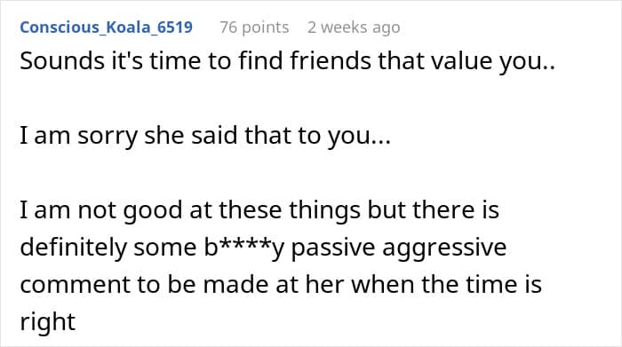 Readers felt the author’s friend was rude and unkind, with many encouraging her to rethink their friendship
