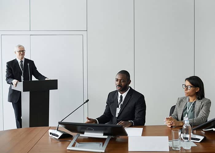 There we stood, my new boss on one side of the room, our guest on the other side, me in the middle doing some work.