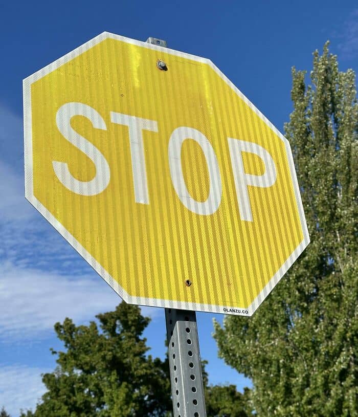 #71 This Stop Sign Has Been So Weathered By The Elements That It’s Turned Yellow