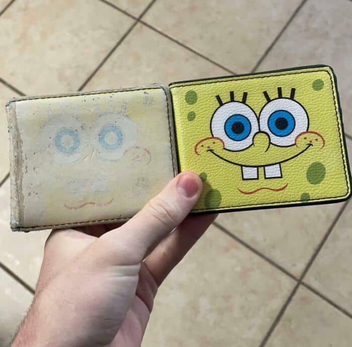 #80 5 Year Old Spongebob Wallet Next To My Brand New One