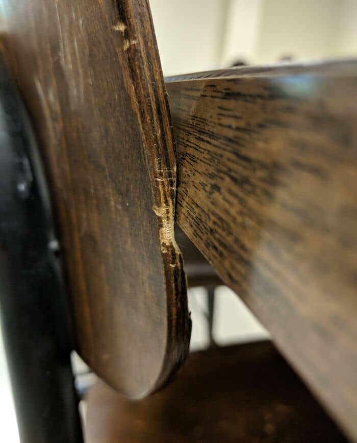 #103 The Back Of This Chair Is Worn Down From Constantly Hitting The Table