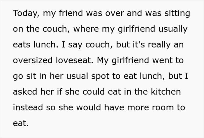 However, the man in this story takes a more drastic approach: He keeps his girlfriend out of their shared home for six to seven hours daily. Things came to a head when he also kicked her out of her usual hangout spot in the house.